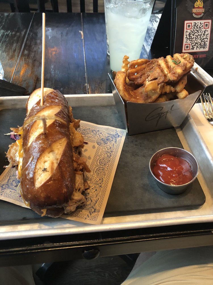 Welcome to Guy Fieri's Flavortown Sports Kitchen, where culinary excitement reigns supreme right on the Las Vegas Strip. This vibrant eatery specializes in tantalizing burgers and mouthwatering chicken wings, setting the stage for an unforgettable dining experience.